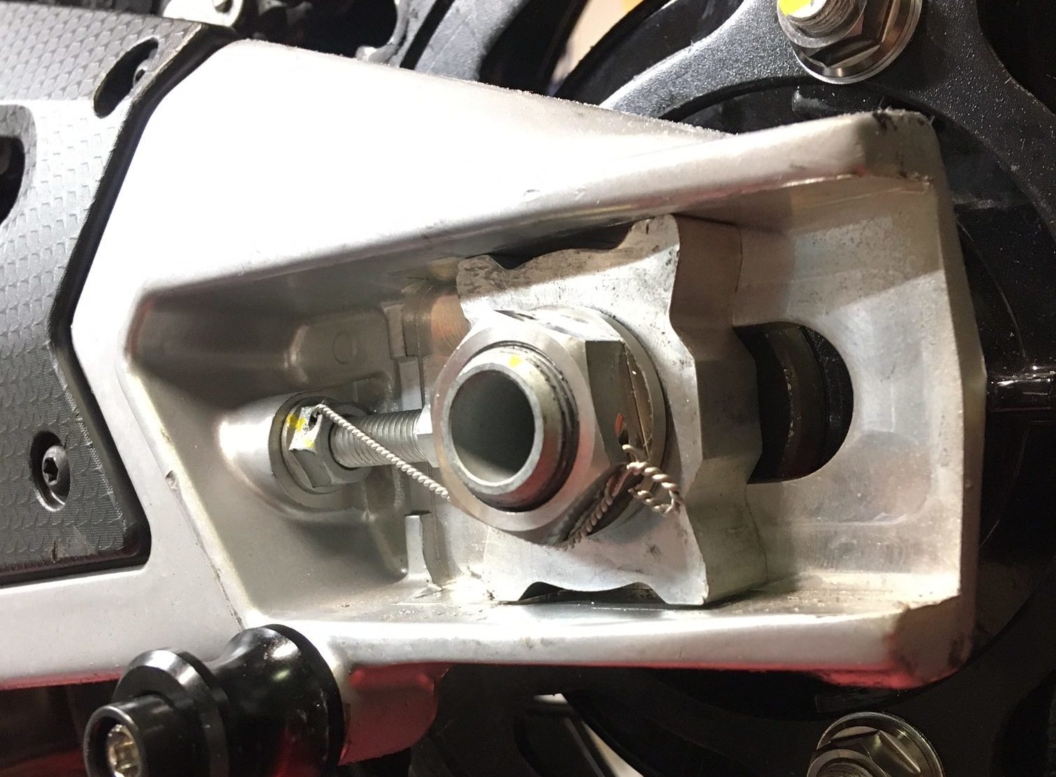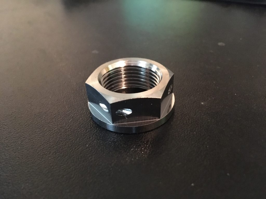 Aprilia RS660 Titanium Rear Axle Nut – Pre-Drilled for safety wire. Fits all year Aprilia RS660 2021+